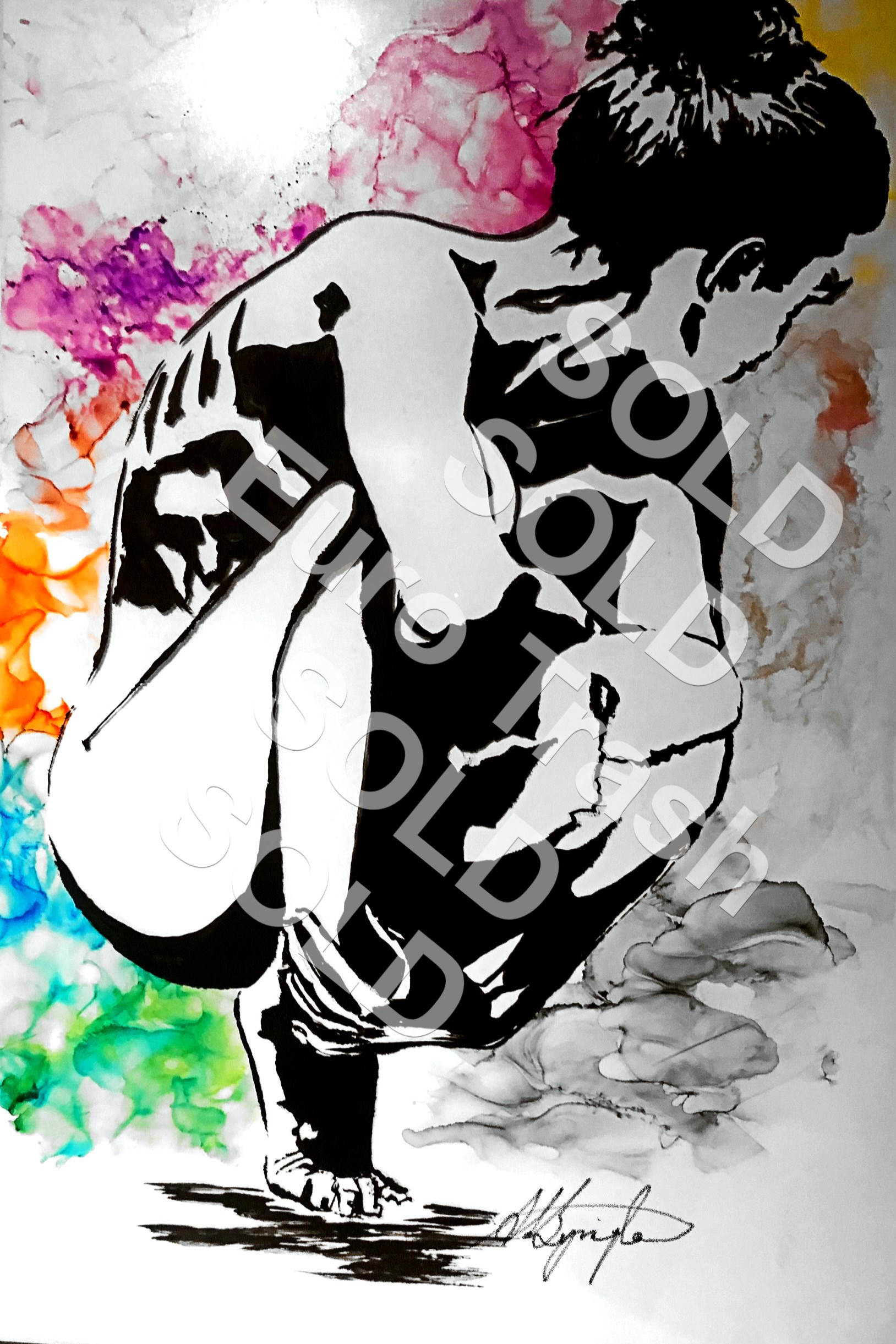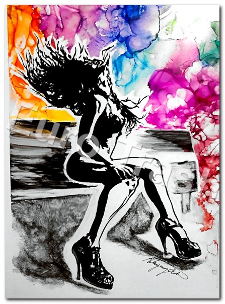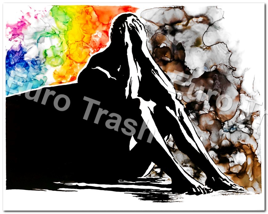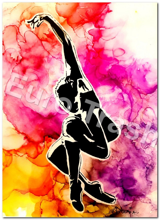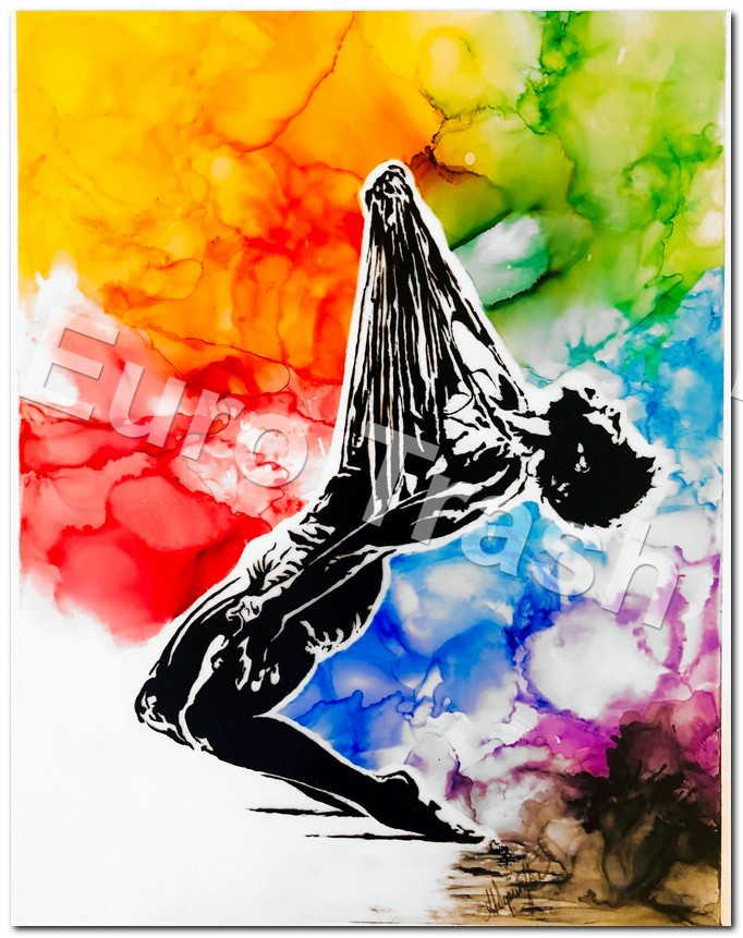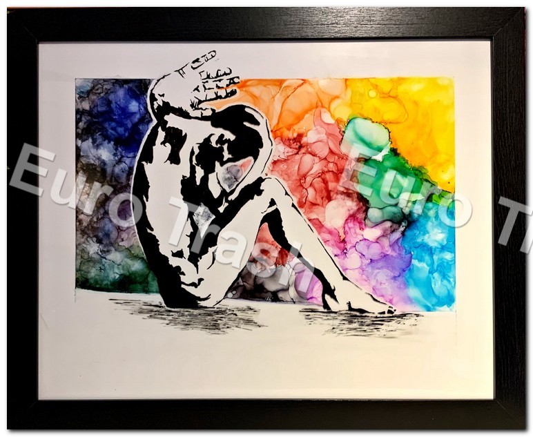 22” x 18” framed gesso, India ink, alcohol ink